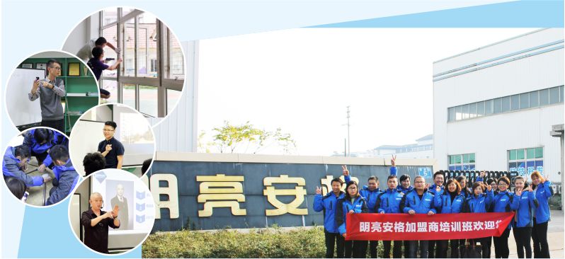 明亮安格開設(shè)培訓(xùn)班,以成熟的培訓(xùn)機(jī)制,特聘專業(yè)講師和優(yōu)秀加盟商為加盟商開展企業(yè)文化、產(chǎn)品知識(shí)、測量安裝、銷售技巧、活動(dòng)策劃、市場推廣、渠道拓展、公關(guān)禮儀等專題培訓(xùn)。